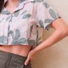 Blusa corta con mangas y cuello camisero, diseñada con bolsillos frontales que aportan un estilo moderno y funcional. Una prenda versátil, ideal para crear looks casuales o urbanos con un toque contemporáneo.