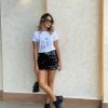 Blusa en algodón talla única ajustada al cuerpo con estampado de rostros.