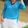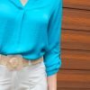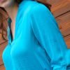 Blusa de mangas tipo seda con escote en V disponible en talla S, M Y L.
