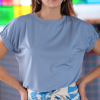 BLUSA ALGODON MANGAS CORTAS CON RESORTE CUELLO REDONDO, VERSATIL QUE PUEDES USAR CON FALDAS, SHORT , JEANS