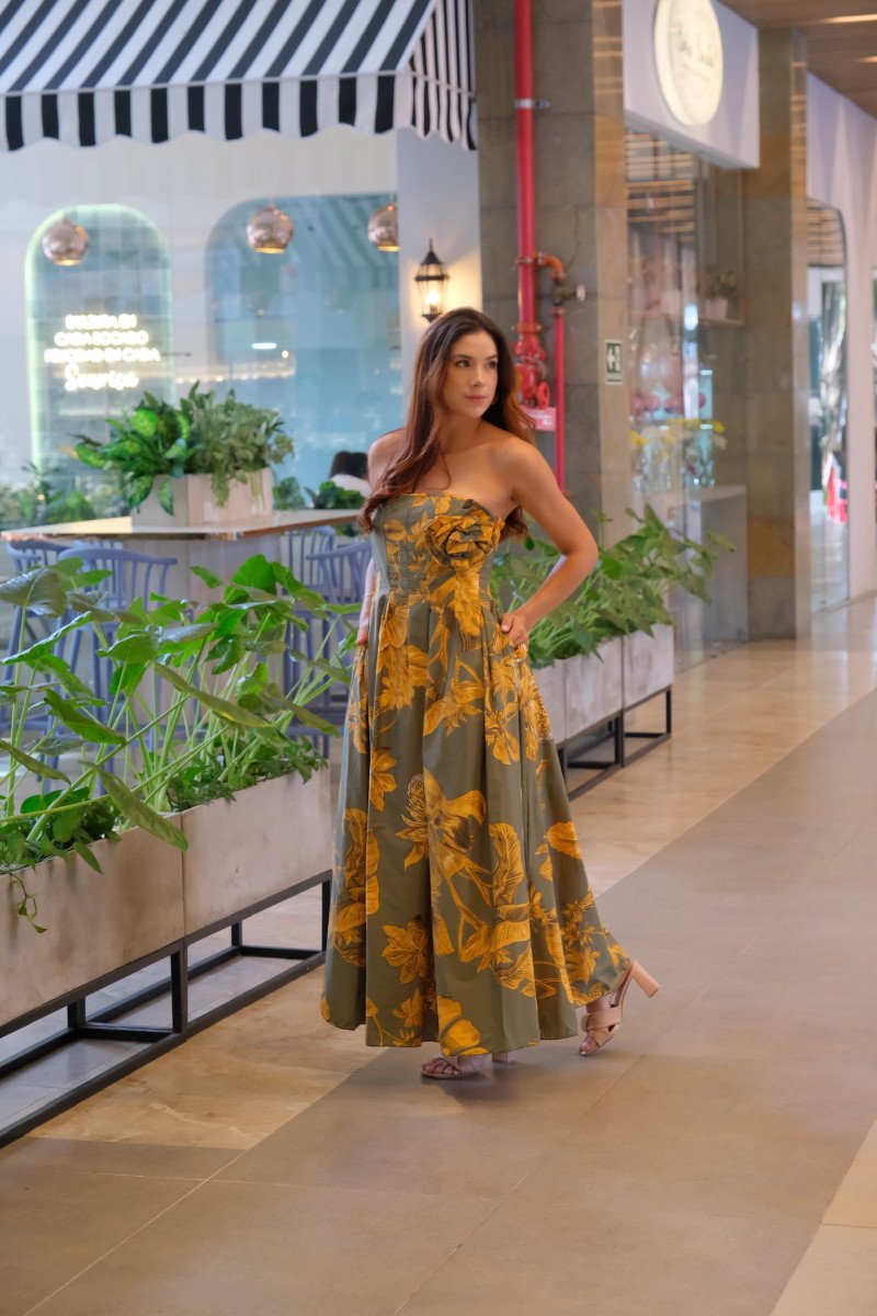 Enterizo strapless blanco print flores