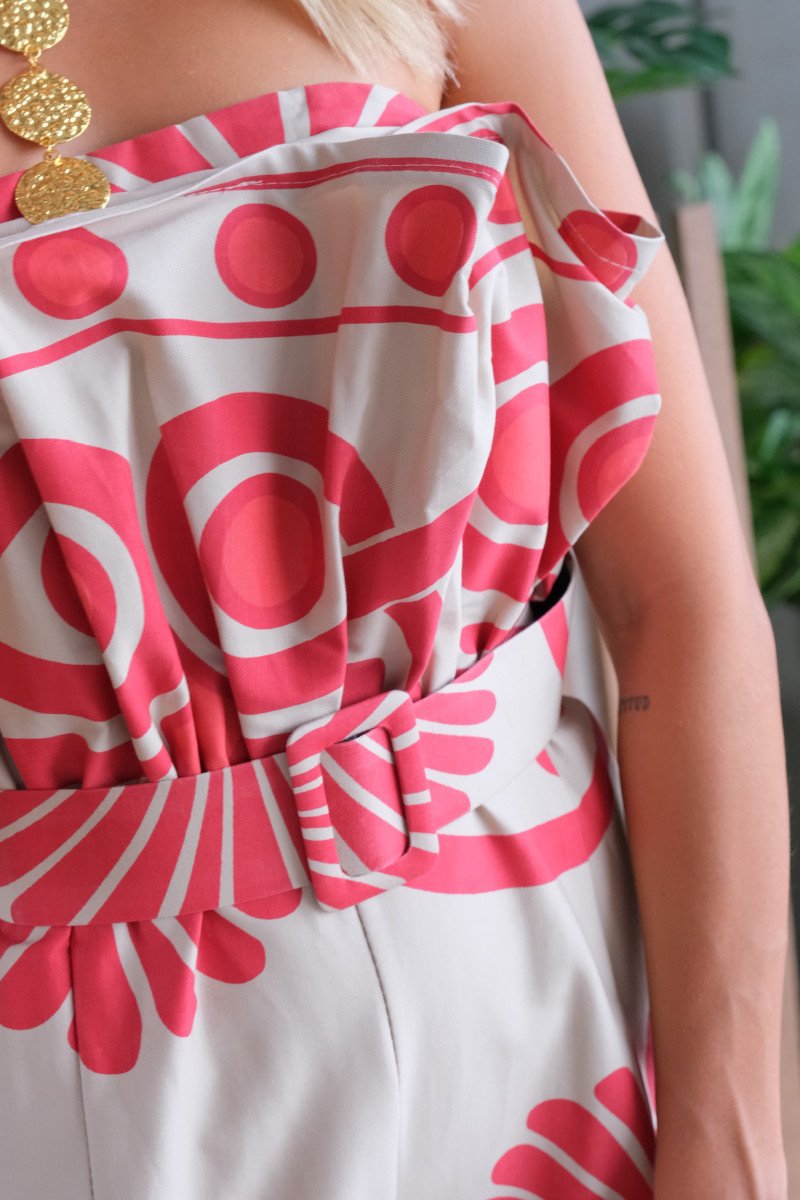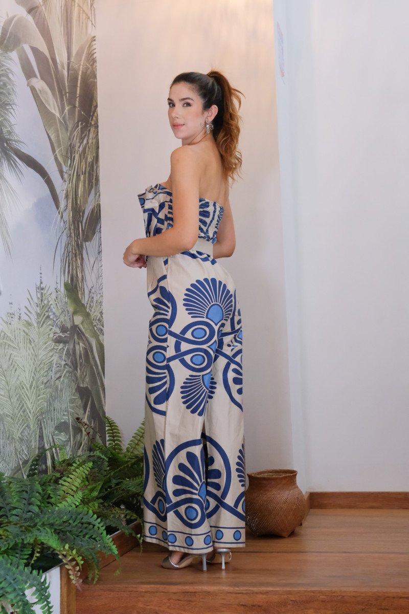 Enterizo strapless blanco print flores
