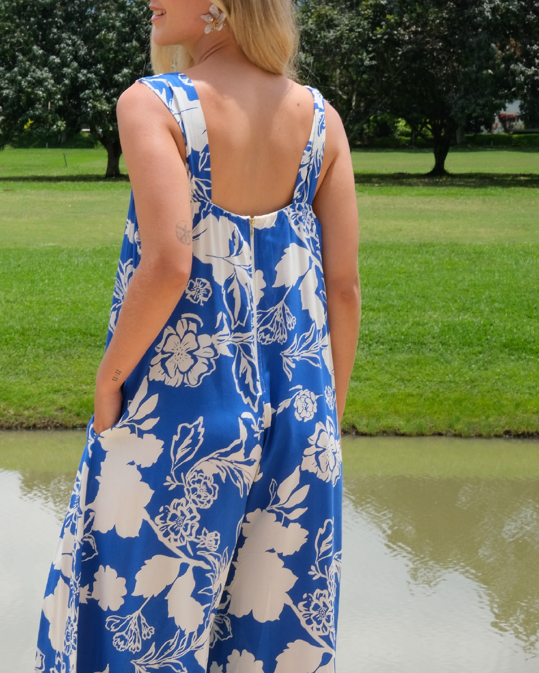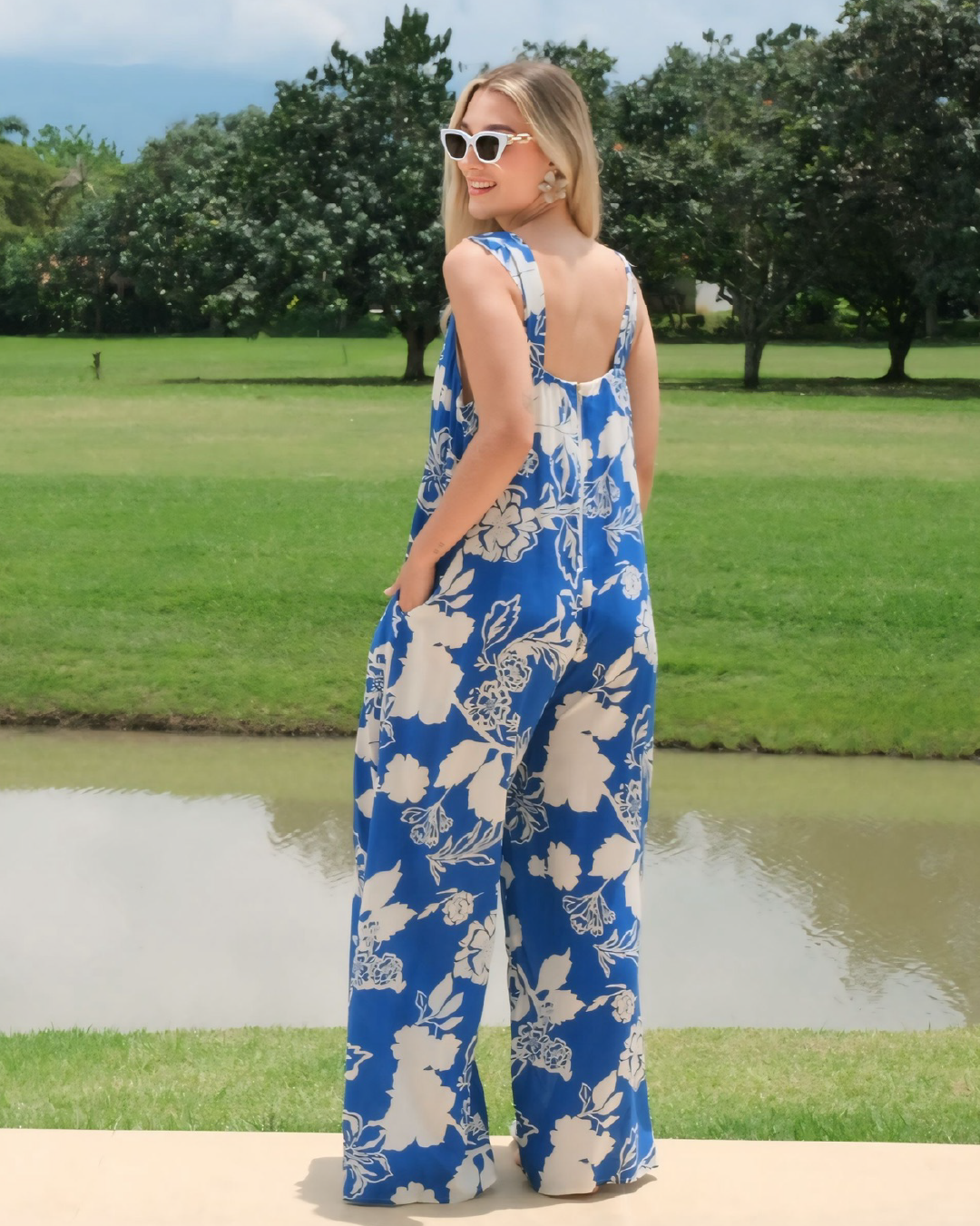 Enterizo largo de manga sisa es la elección perfecta para cualquier ocasión. Confeccionado en 100% rayon, ofrece una comodidad excepcional y un ajuste fluido. Su diseño tipo culotte y el atractivo print floral azul sobre fondo blanco aportan un toque fresco y moderno a tu guardarropa. Ideal para un día de verano o una salida nocturna, este jumpsuit combina estilo y versatilidad, asegurando que siempre luzcas radiante.