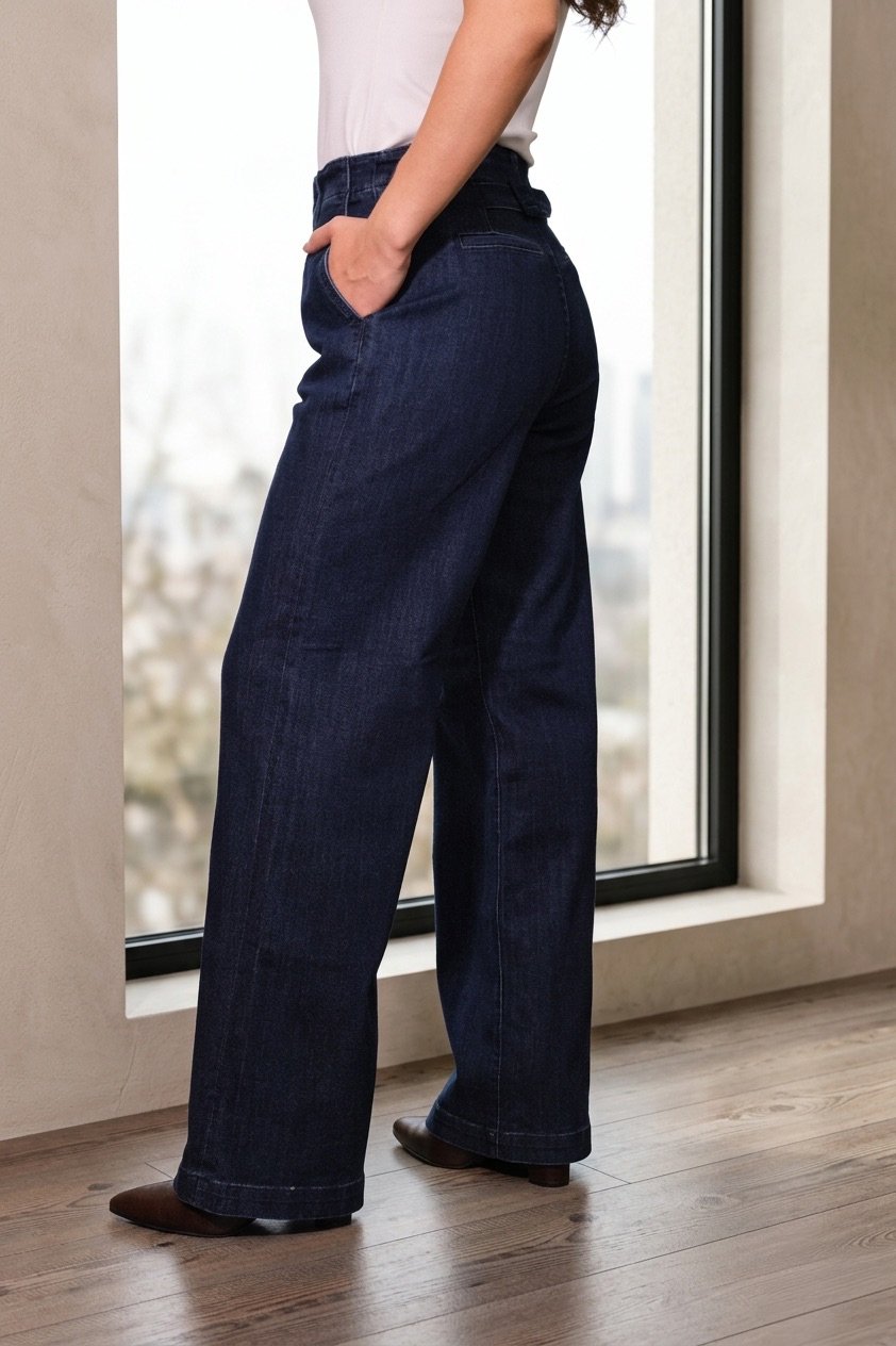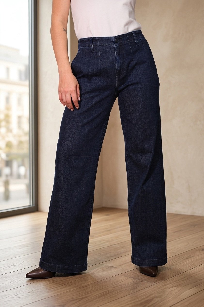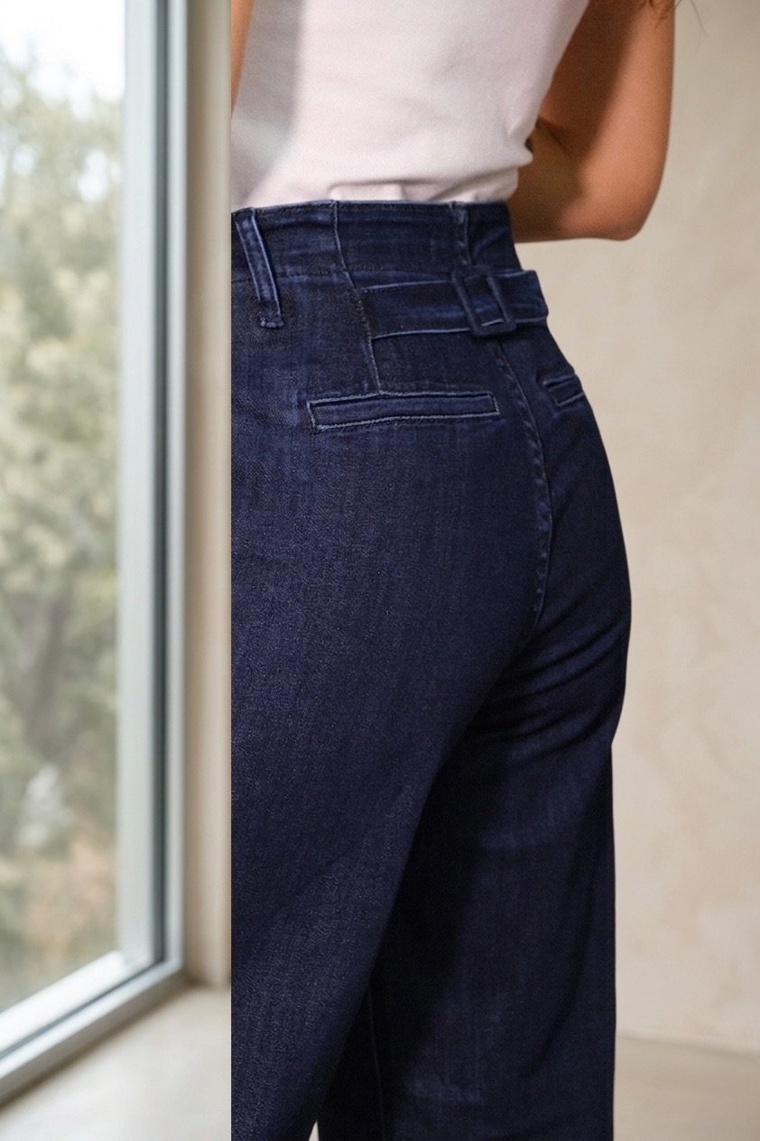 Jean de bota recta con diseño atemporal y versátil, ideal para looks casuales o más estructurados. Su corte recto ofrece un ajuste cómodo y favorecedor para el día a día.