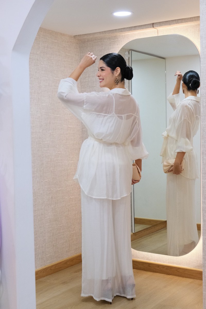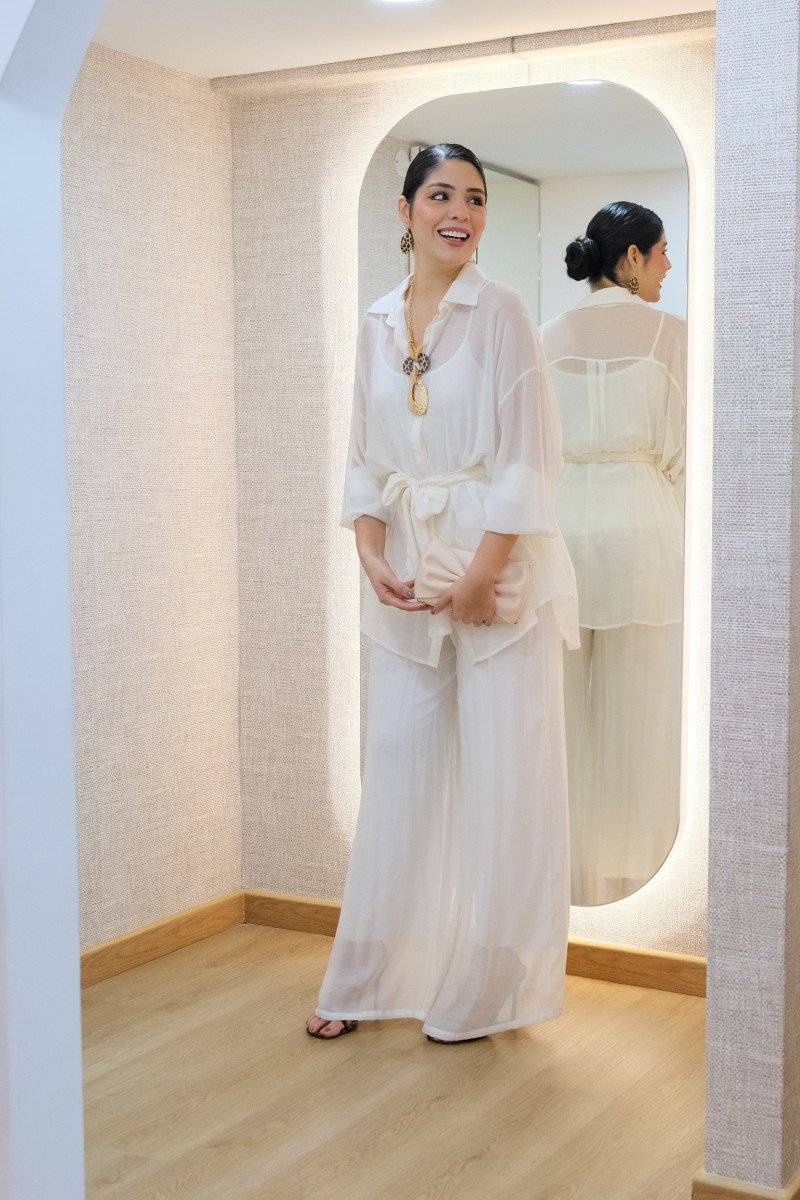SET CON FONDO EN COLOR BLANCO HUESO , TALLA UNICA , SILUETA AMPLIA IDEAL PARA TALLAS S HASTA XL, SU COMPOSION ES 80% LIOCEL Y 20% NAYLON.