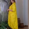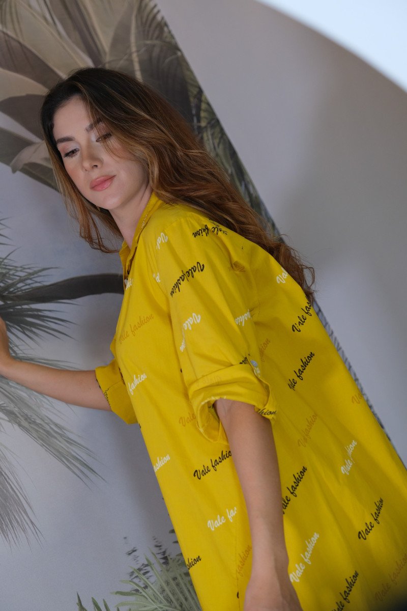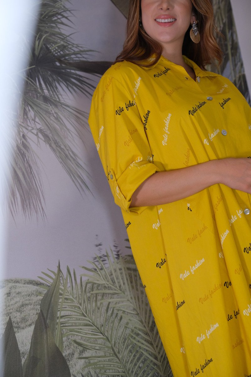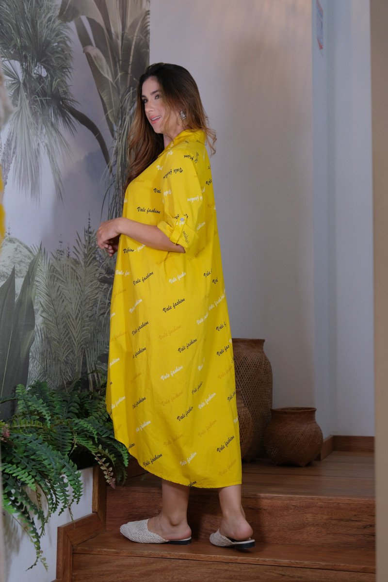 Vestido de lino talla única de silueta amplia con mangas largas y botones.