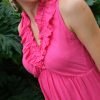 Vestido largo en lino, terminación en bolero en la parte inferior, y cuello en V. Fresco y versátil