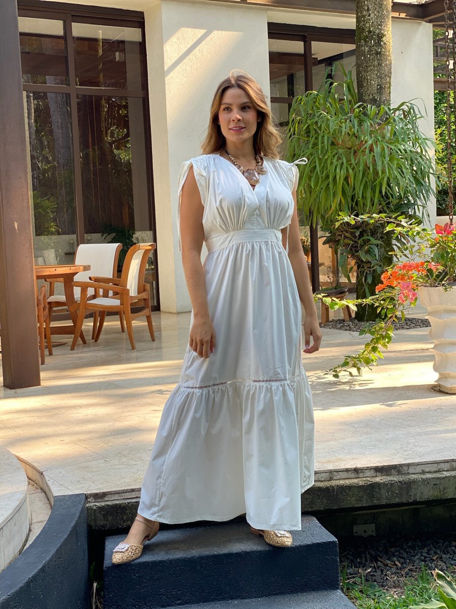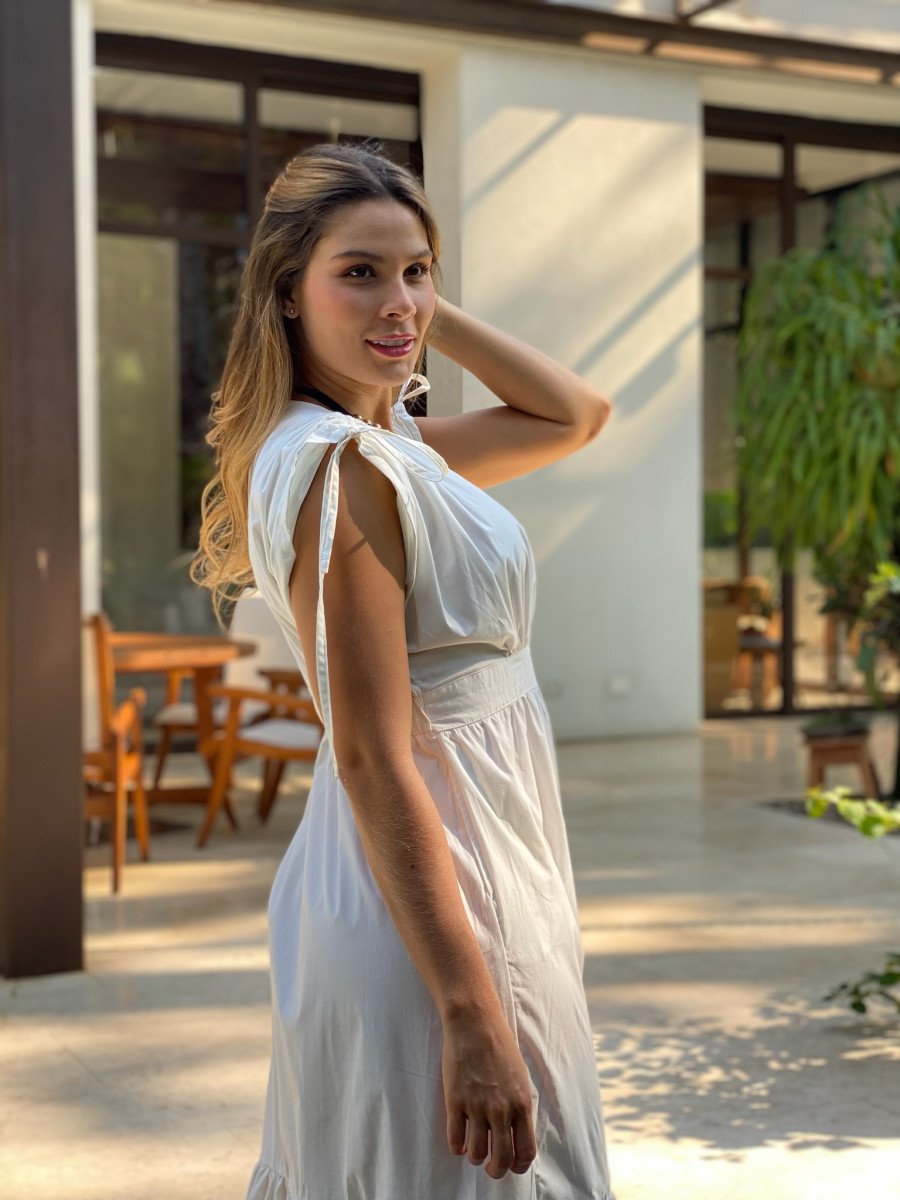 Vestido en algodón con tirantes ajustables en las mangas disponible en talla S,M y L.