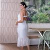 VESTIDO BLANCO MANFA SISA, TIRAS APLIQUES FLORES , CON FONDO