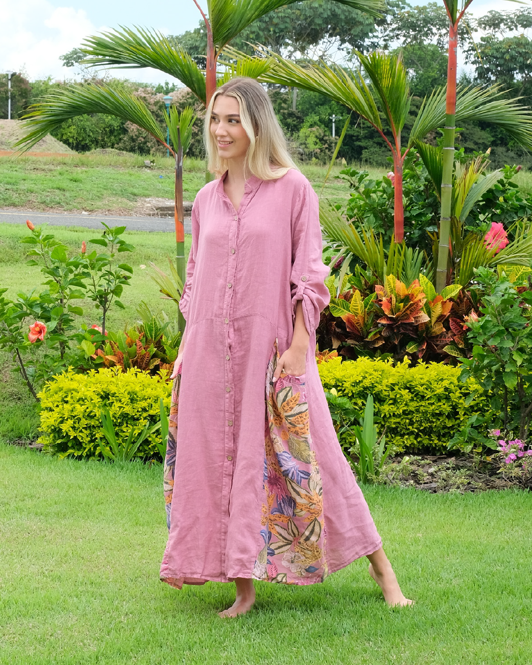 Vestido, confeccionado en un 80% de lino y un 20% de algodón, es la elección perfecta para lucir fresca y sofisticada. Su diseño presenta delicados apliques en hoja rota en las mangas y un bolero en la parte inferior, añadiendo un toque de originalidad y estilo. Ideal para ocasiones especiales o salidas informales, combina perfectamente con sandalias para un look veraniego y chic.