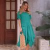 Vestido lino 100% midi, cuello redondo, con manga corta, Atemporal, Oversize